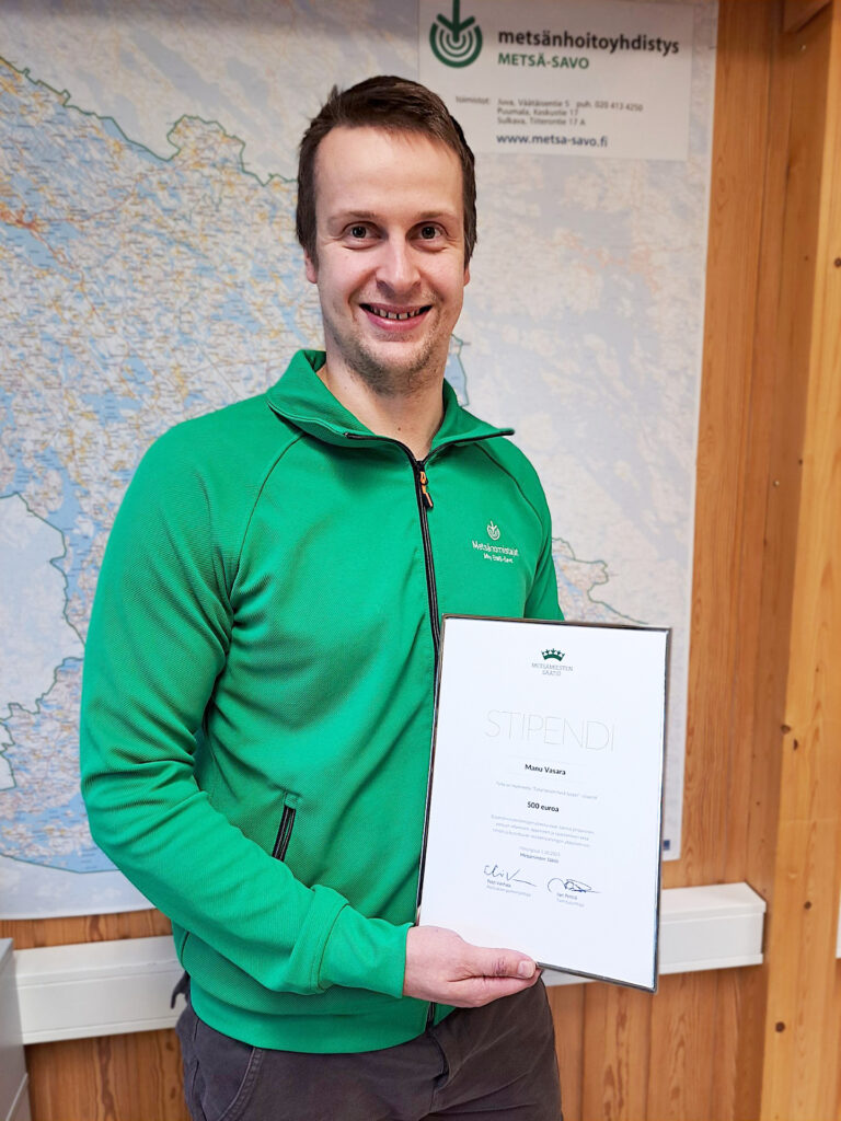 Metsänhoitoyhdistys Etelä-Savon sulkavalaiselle operaatioasiantuntija Manu Vasaralle myönnetty Metsämiesten Säätiön ”Työyhteisön hyvä tyyppi” -stipendi. Stipendin arvo on 500 euroa.