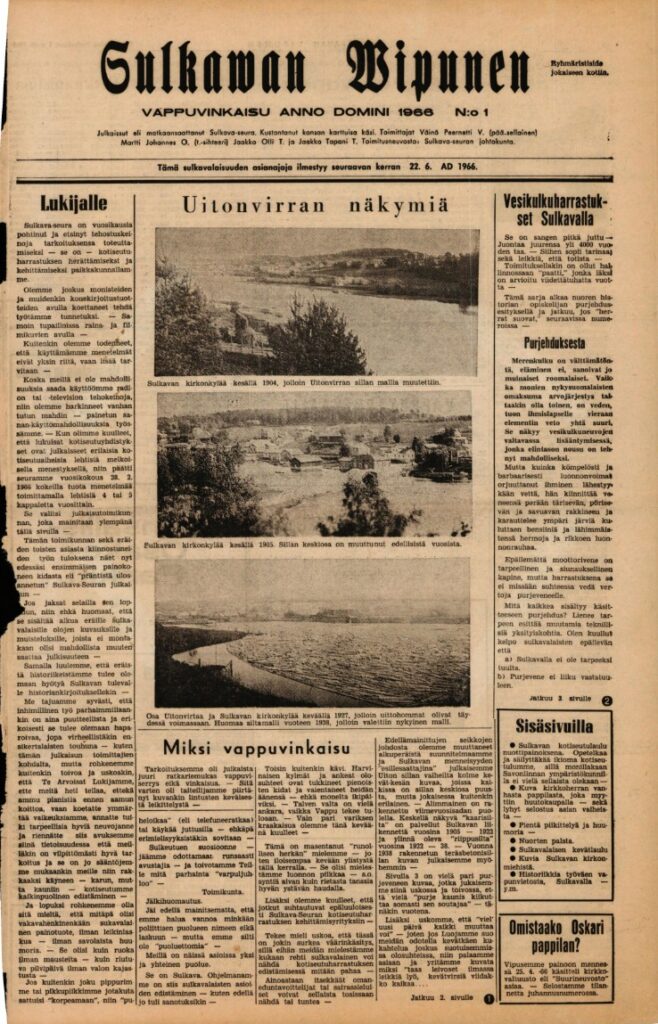 Sulkavan Vipunen -lehden ensimmäinen numero ilmestyi ”vappuvinkaisuna” vuonna 1966.