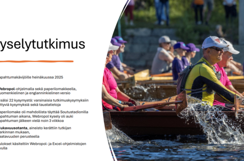 Sulkavan Suursoutujen organisaatio teetti viime kesänä tutkimuksen Sulkavan Suursoutujen talousvaikutuksista Sulkavan kunnalle sekä lähialueille. Jari Kallio Kyselytutkimus tehtiin tapahtumakävijöille Webropol-ohjelmalla sekä paperilomakkeella. Vastauksia kyselyyn saatiin 296 kappaletta. Kyseessä oli Sanna Sillanpään opinnäytetyö ammattikorkeakoulussa. Yleisin ulkopaikkakuntalaisten